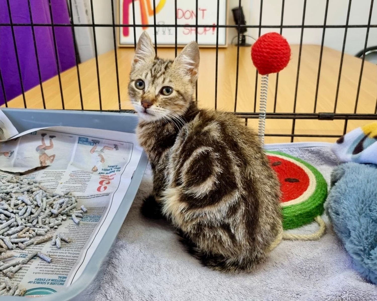 Daniel travelled from ROAR in Cobar after he was found at the local tip. He travelled to us as a ring-in with another litter - arriving skinny, dirty, and overwhelmed. All were found in the pound at an age far too young and fragile to fend for themselves. Despite his rough beginning, he carries himself with quiet dignity. With care and safety, he has blossomed into a kitten who knows how to charm his audience — and his playmates.