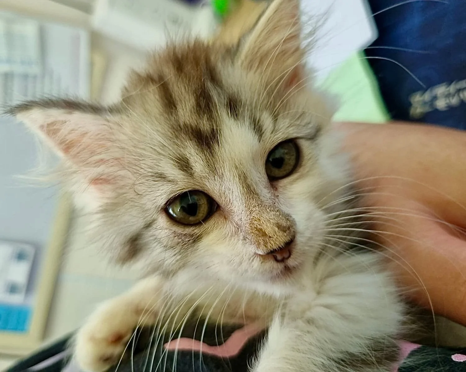 Tiny is affectionate, brave, and endlessly charming — a little star who lights up every room she enters. She is the inspiration behind the naming of our Elton's Kittens litter! Born in late December, we estimate Tiny is about 10 weeks old. Her adoption fee is $250, helping to cover the cost of her medical treatments and care.