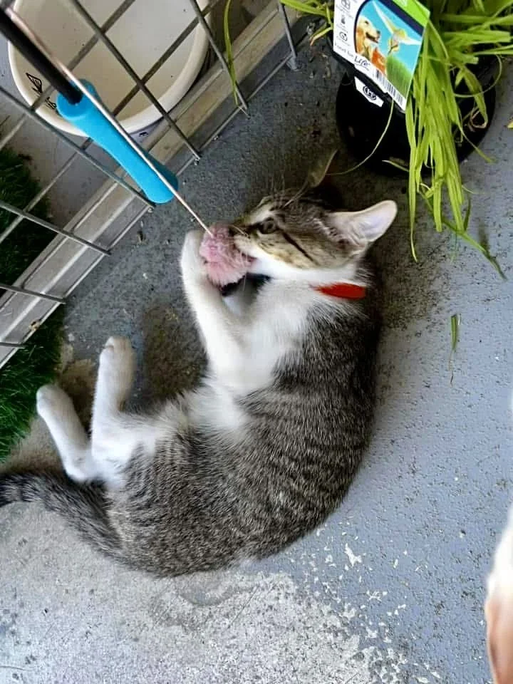 Phoebe is an 11-week-old female kitten with a zest for life and an adventurous spirit. Born at our facility, she is one of the five delightful "Charmed Kittens" brought into the world by her mum, Alyssa, who travelled all the way from Cobar and then had her kittens within a week of arriving.